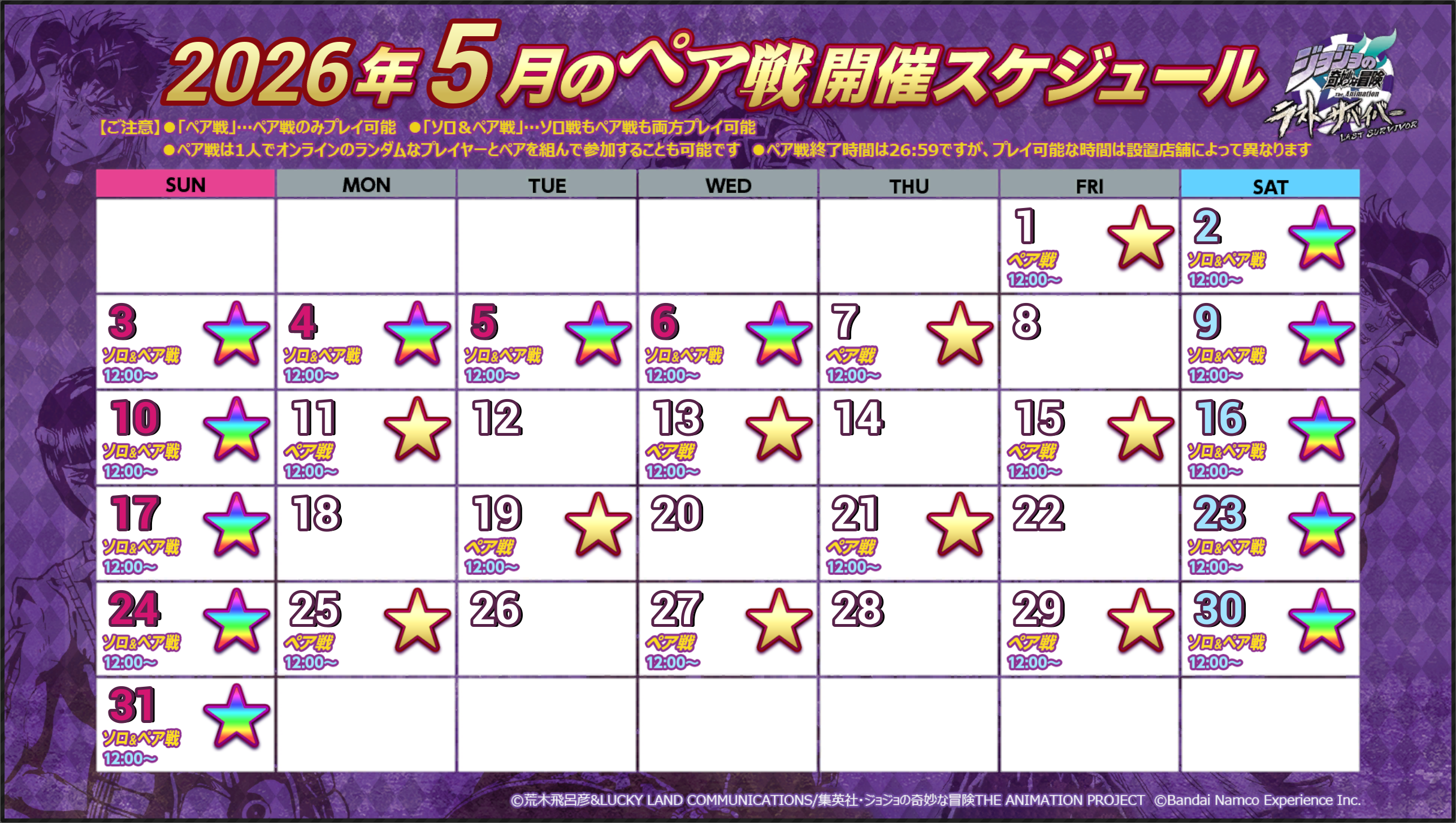 ・ペア戦終了時間は各日とも26:59ですが、プレイ可能な時間は設置店舗により異なります。