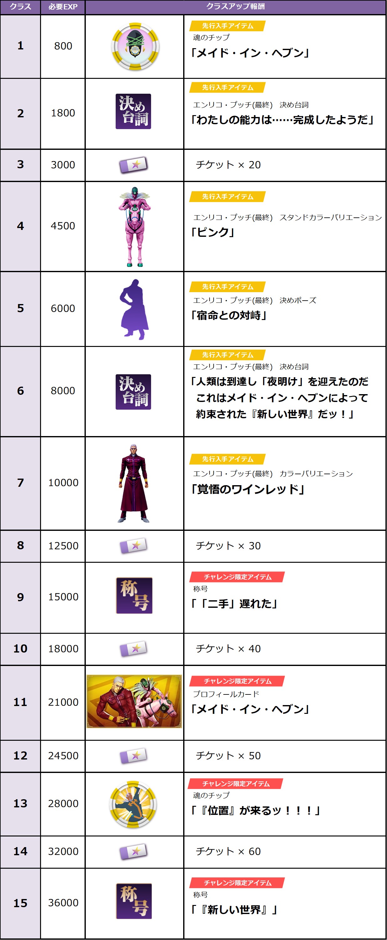 【イベント期間】2026/3/4(水)10:00 ~ 2026/04/21(火)25:59【クラスアップ報酬一覧】