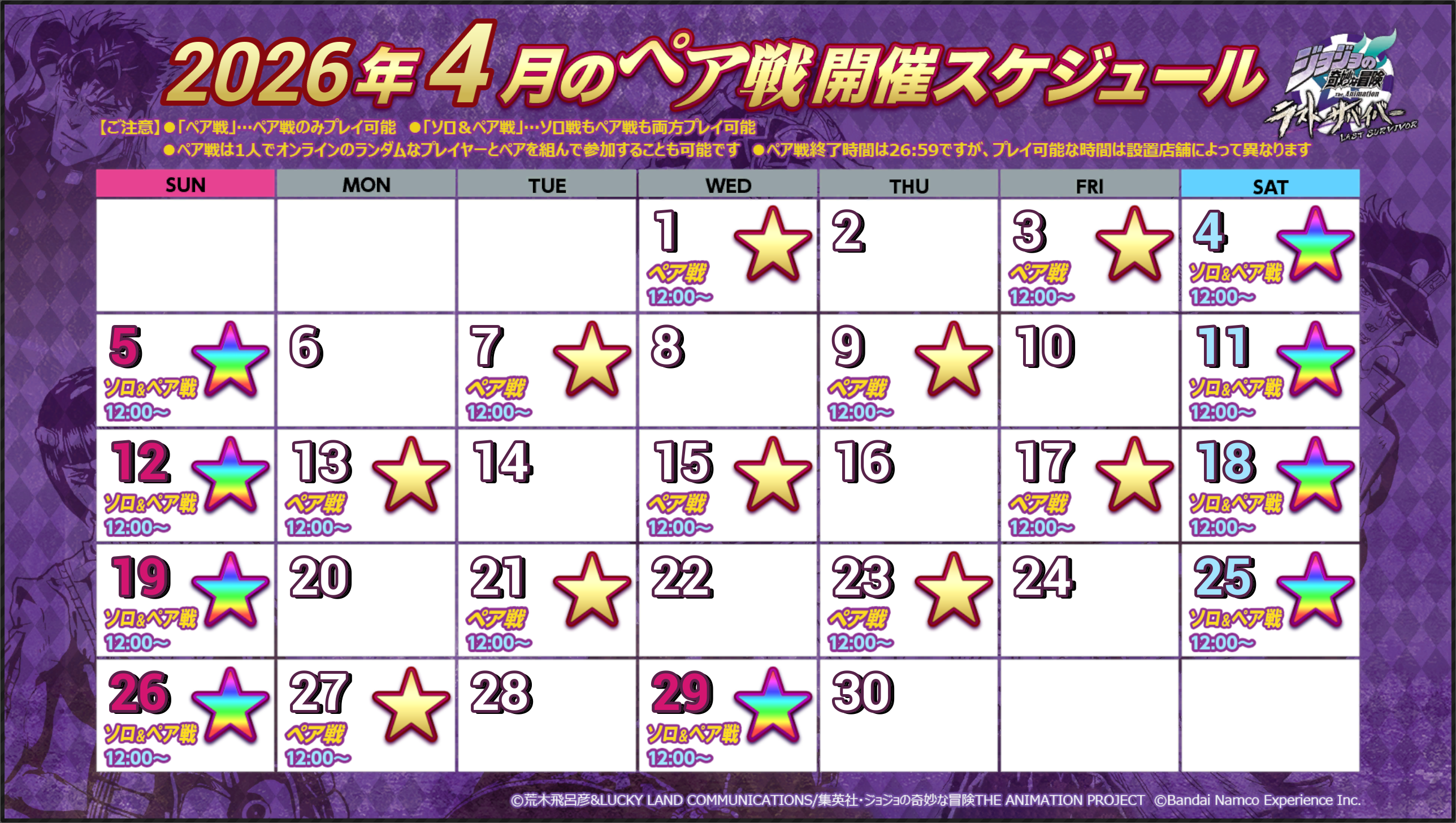・ペア戦終了時間は各日とも26:59ですが、プレイ可能な時間は設置店舗により異なります。