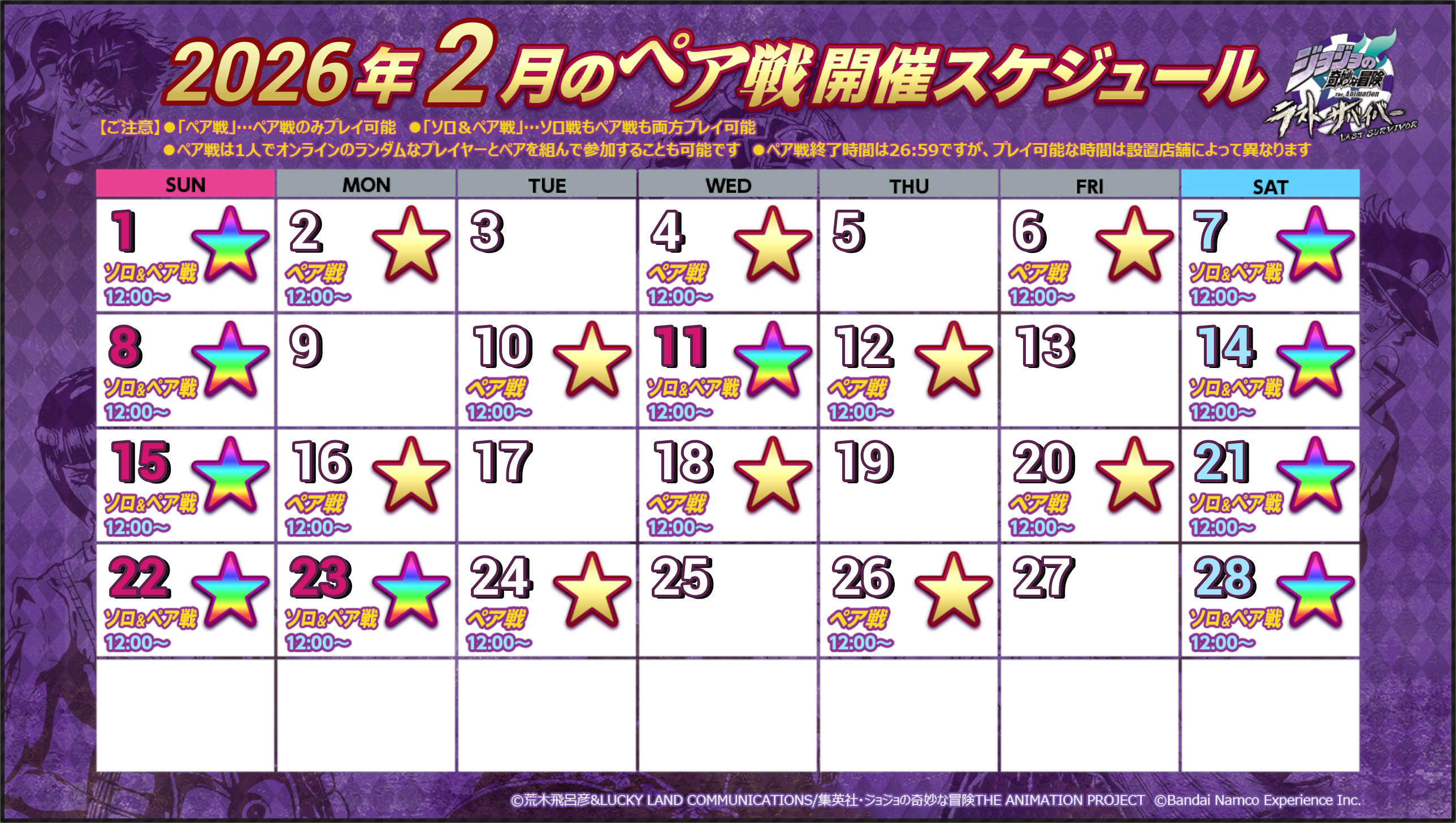 ・ペア戦終了時間は各日とも26:59ですが、プレイ可能な時間は設置店舗により異なります。