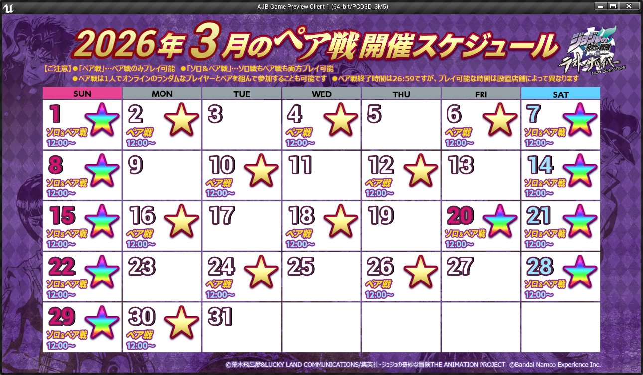 ・ペア戦終了時間は各日とも26:59ですが、プレイ可能な時間は設置店舗により異なります。
